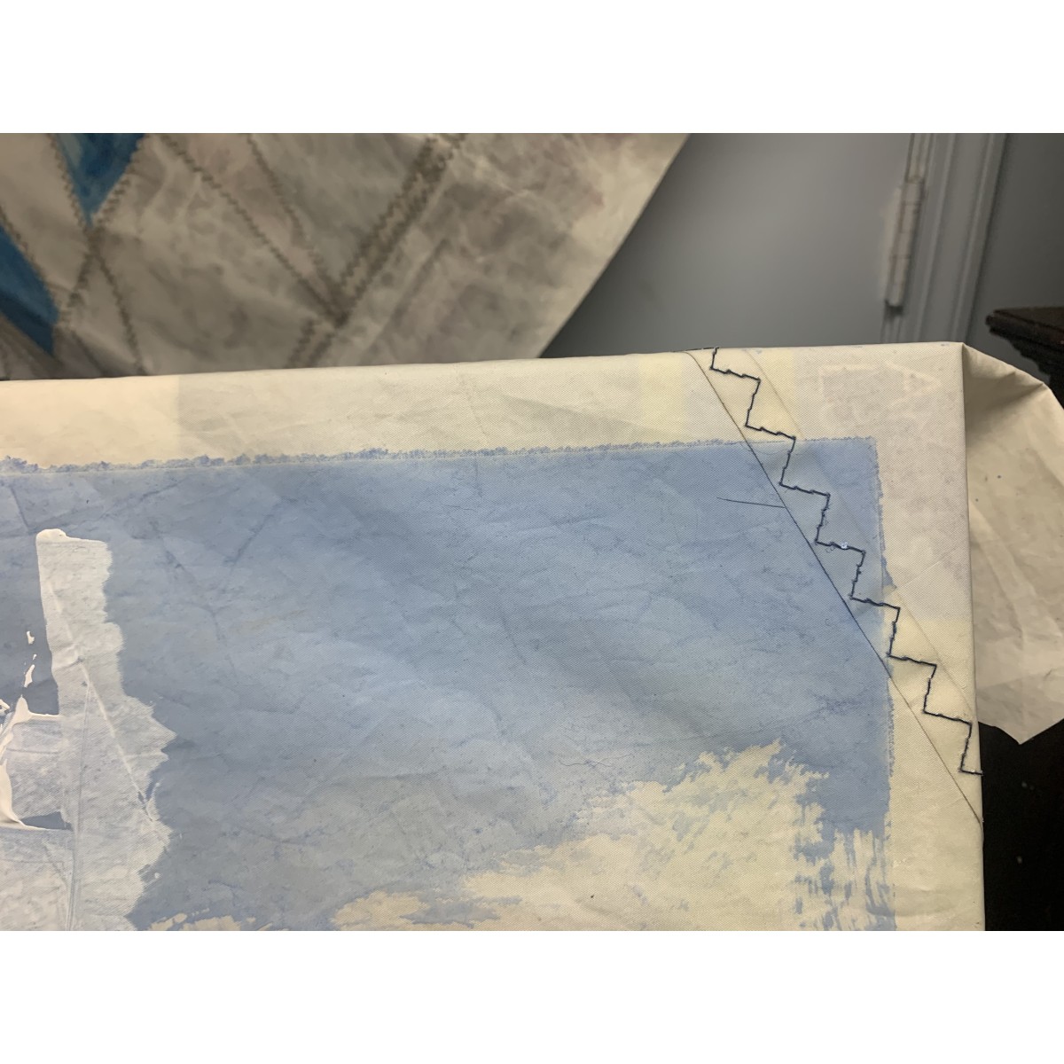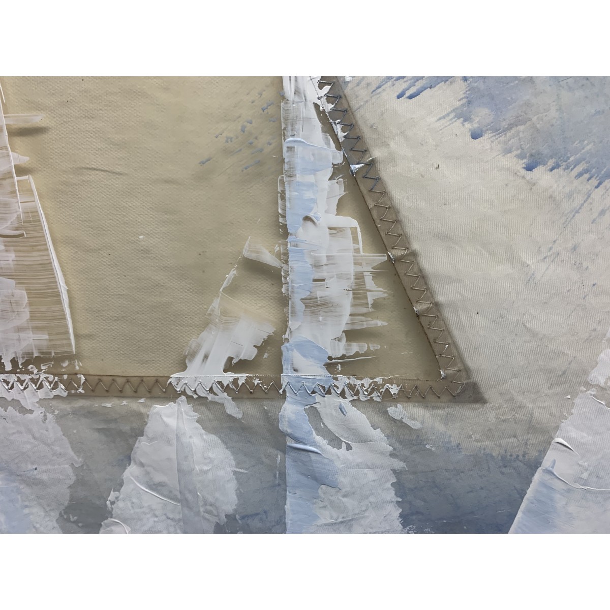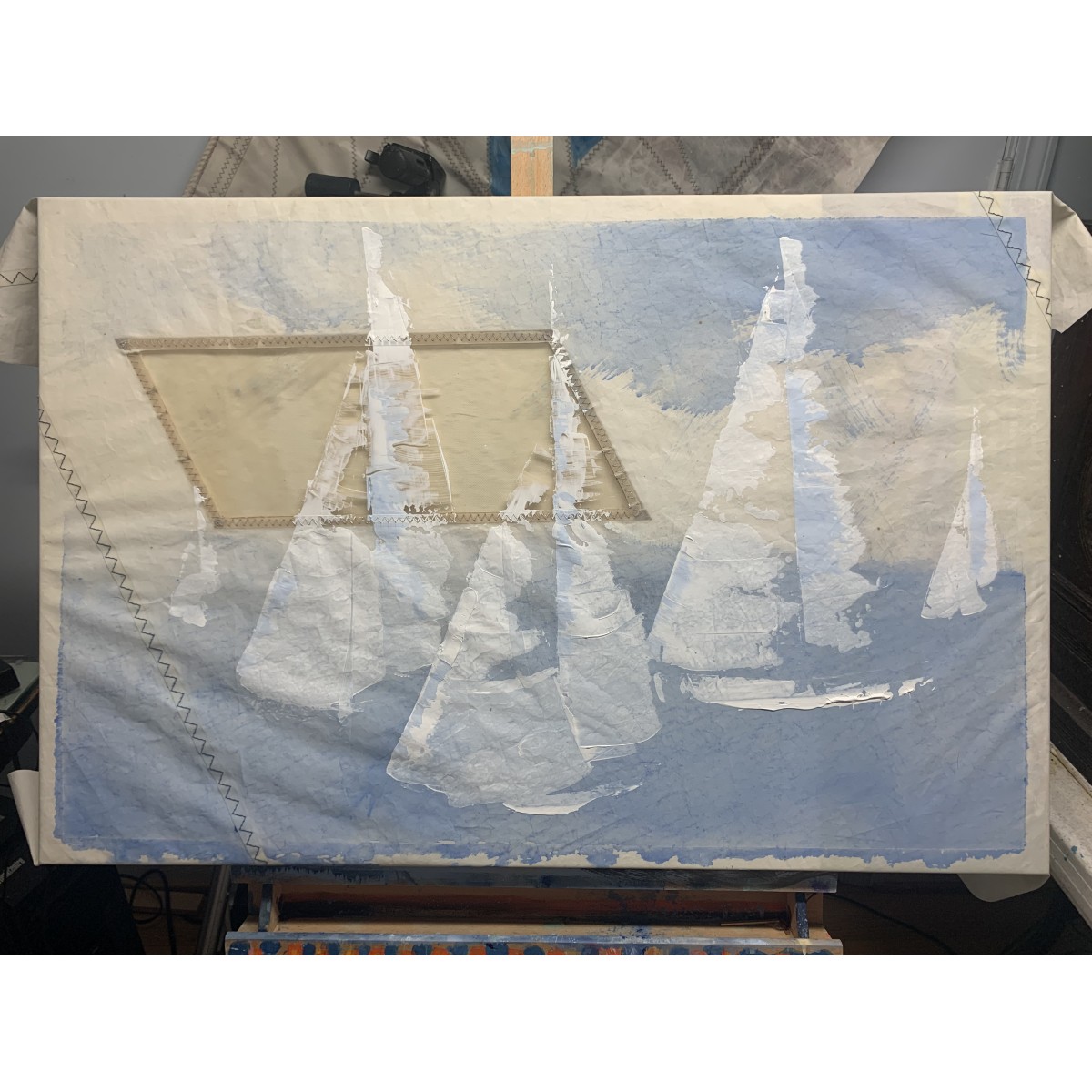 Sailboat Painting Spinnaker sailing down wind on recycled sails size is 24" x 36" with custom wooden frame