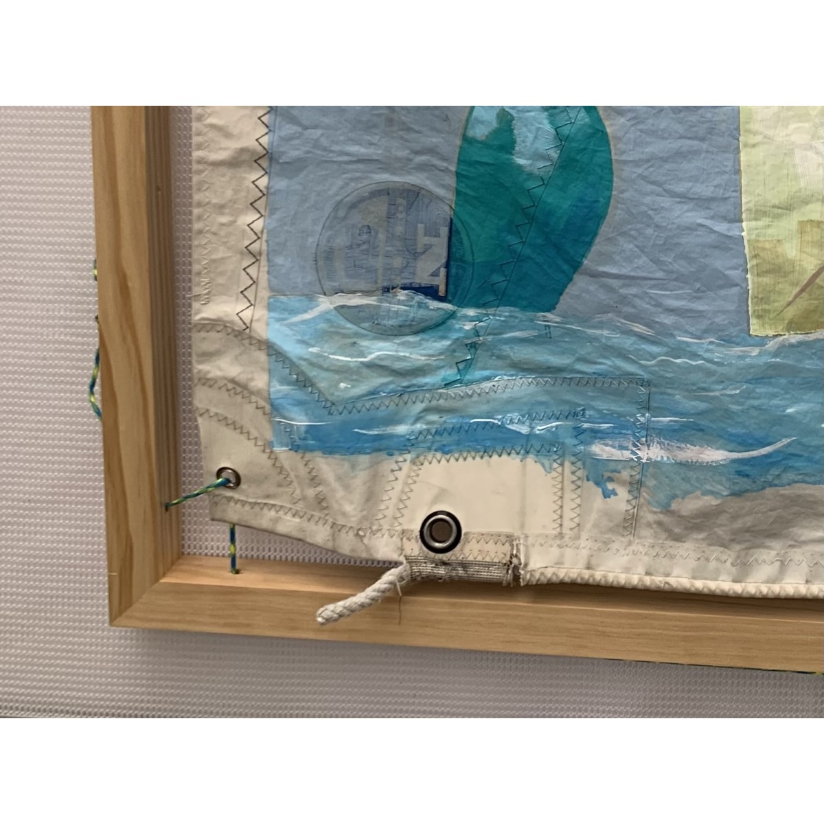 Sailboat Painting Spinnaker sailing down wind on recycled sails size is 24" x 36" with custom wooden frame